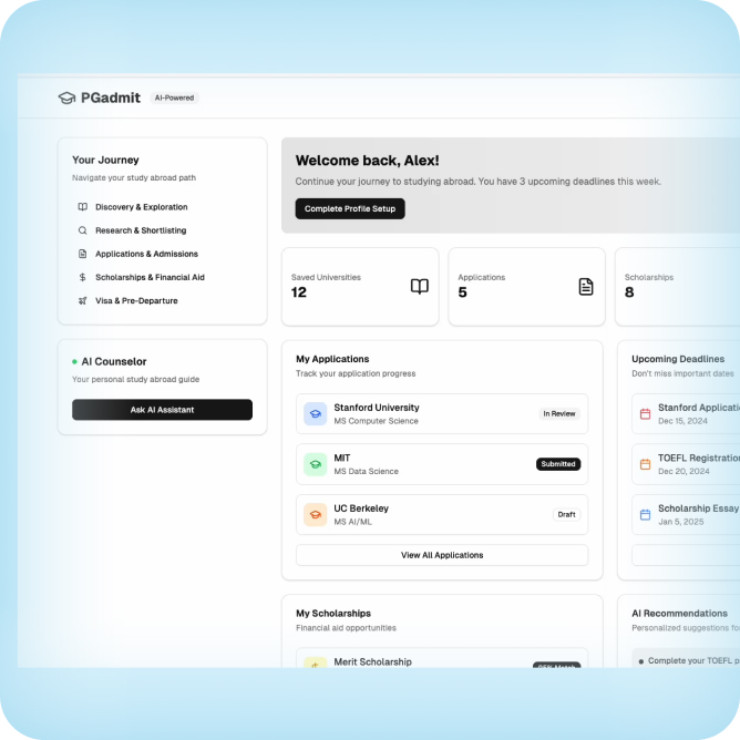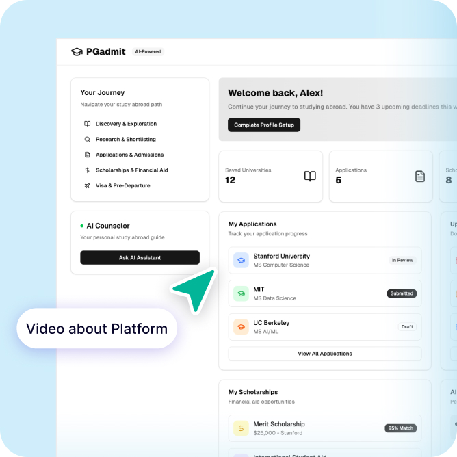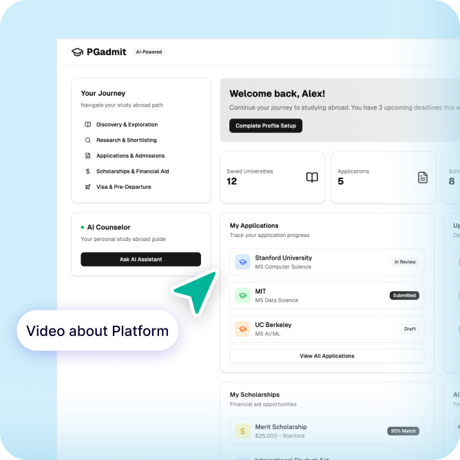 Applying abroad shouldn’t feel complicated. With PGadmit, it’s just three clicks away from clarity, confidence, and your dream university.